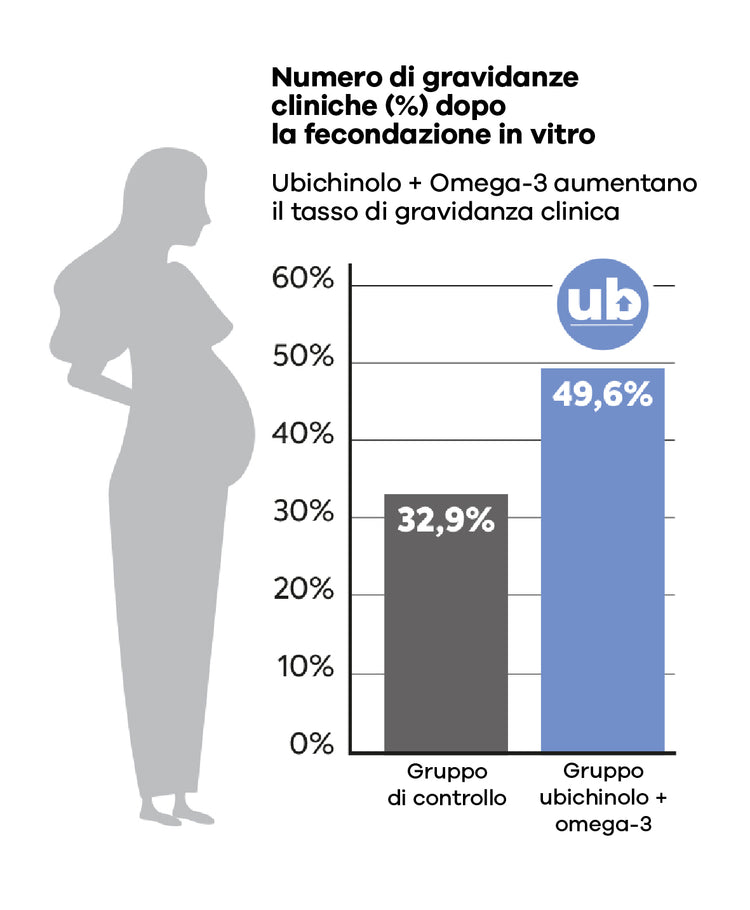 Le proprietà antiossidanti dell'ubichinolo hanno dimostrato di essere supporto contributivo a tassi di gravidanza più elevati nelle procedure di fecondazione in vitro, per questo motivo è sempre più consigliato come integratore di prima scelta durante i percorsi di PMA.
