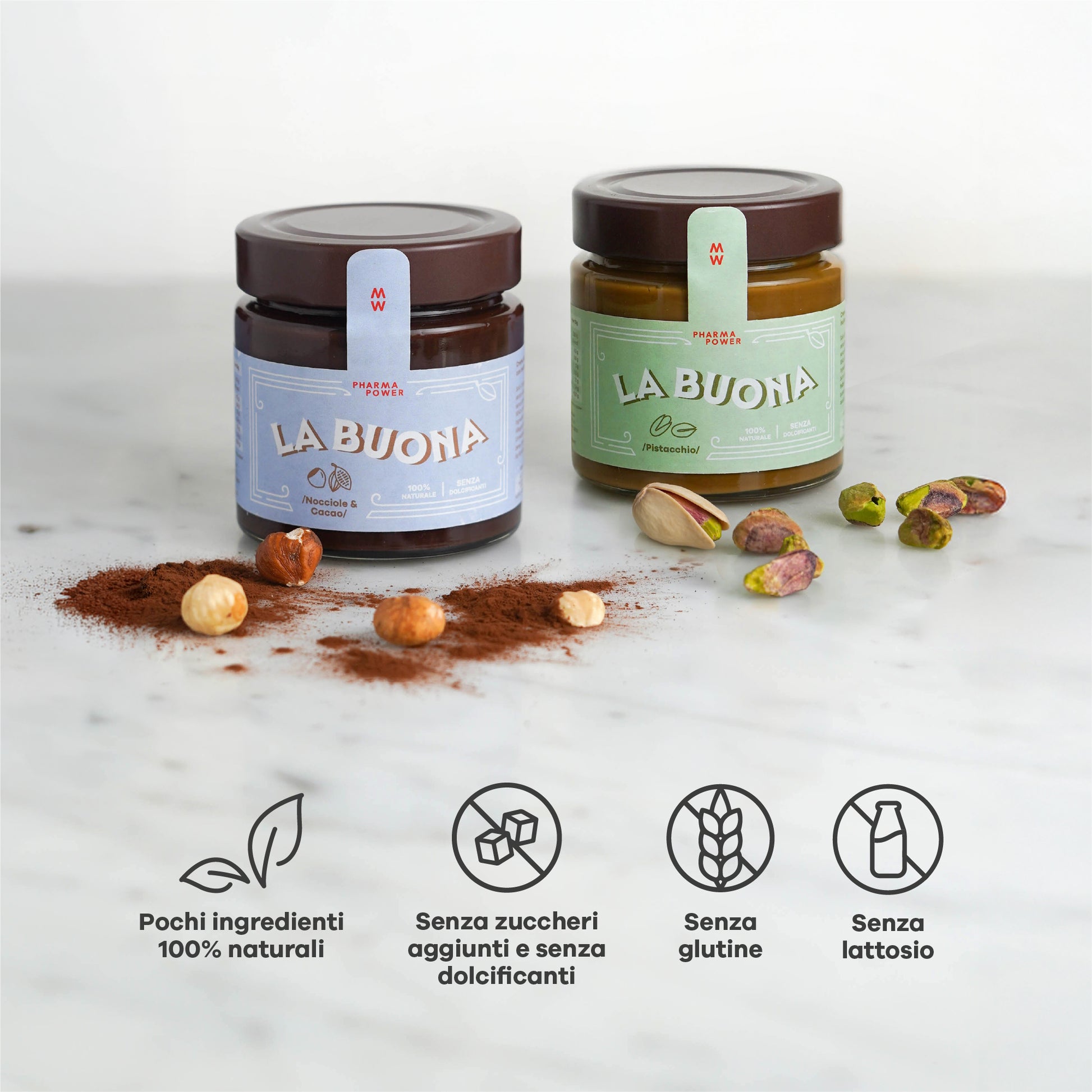 Le creme spalmabili La Buona di PharmaPower nascono da un’idea semplice: pochi ingredienti, scelti benissimo.
